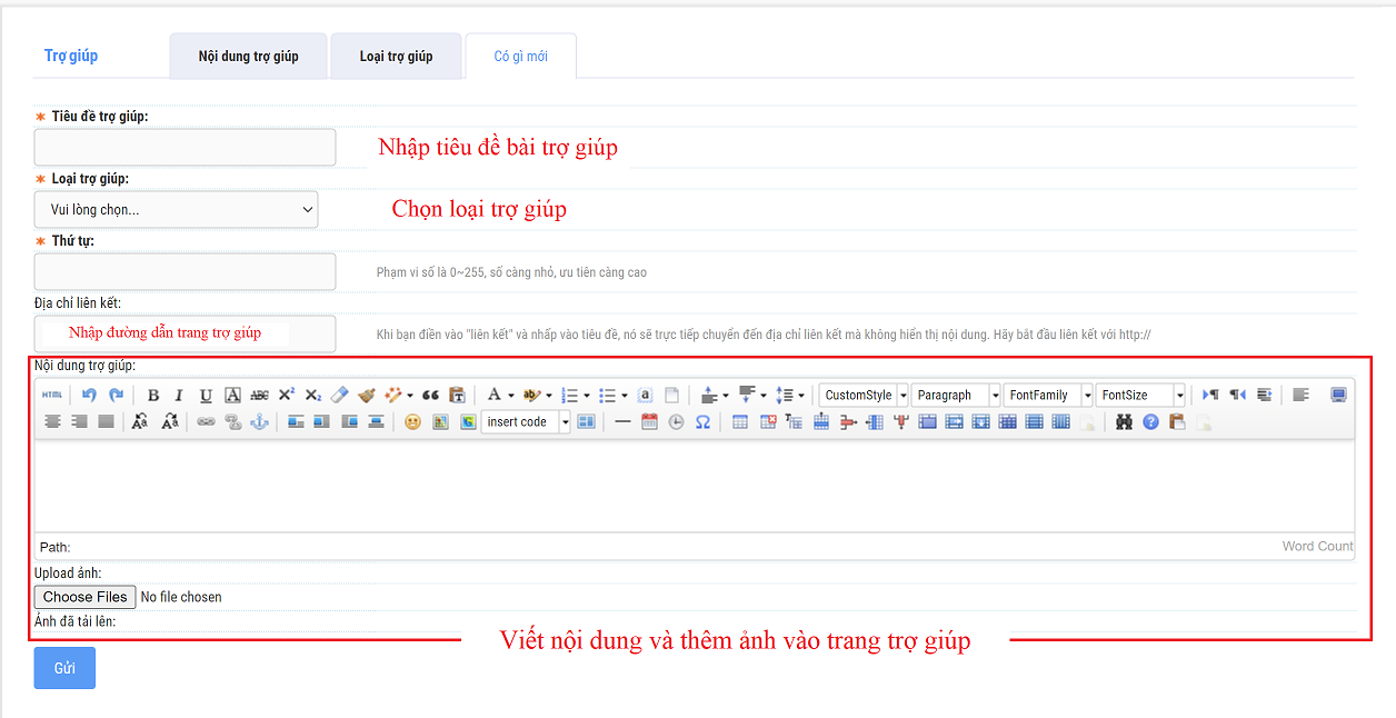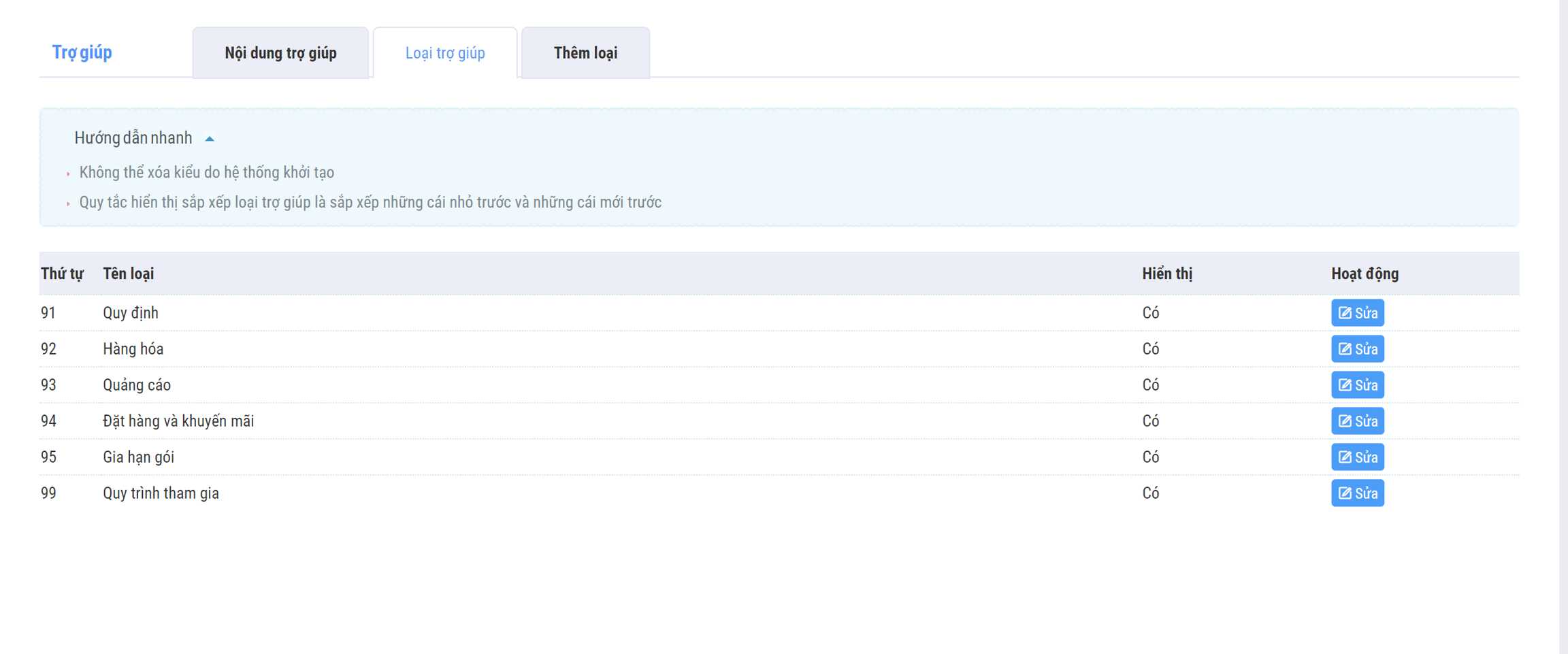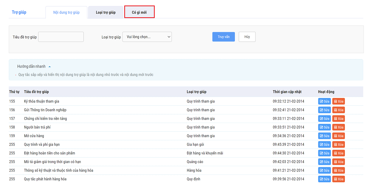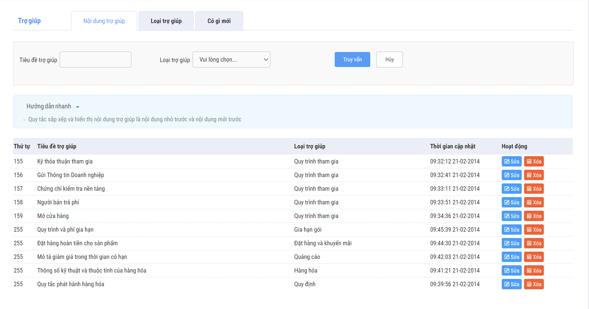 Giao diện trang Trợ giúp sau khi thêm các nội dung
