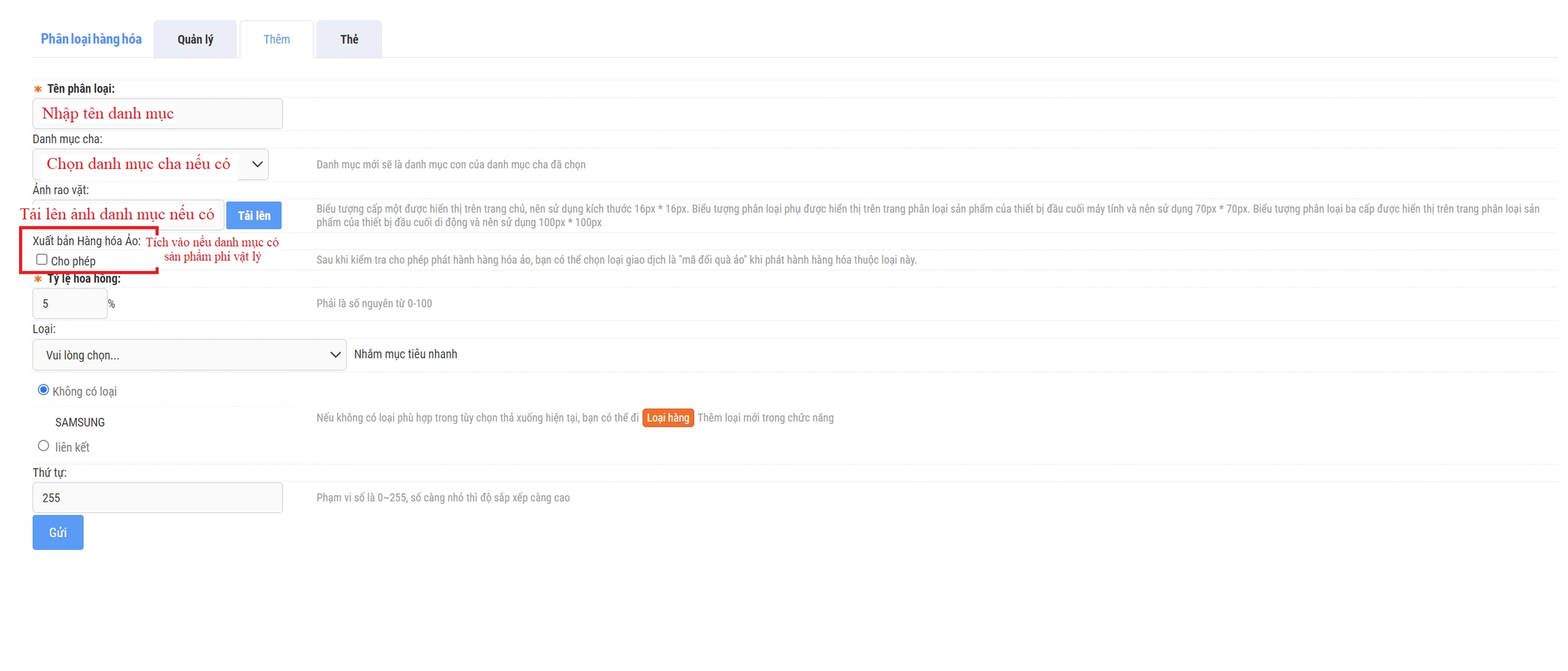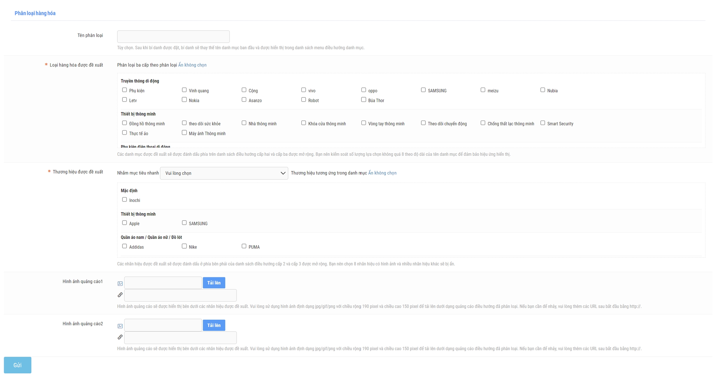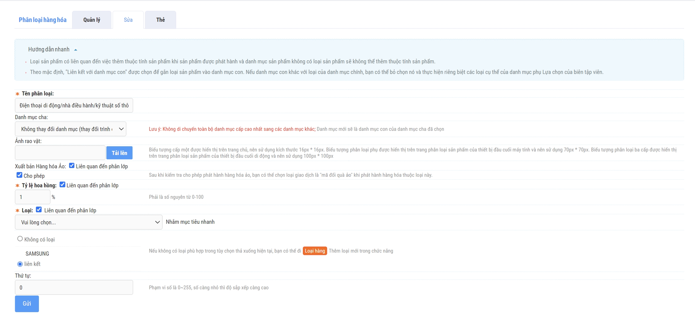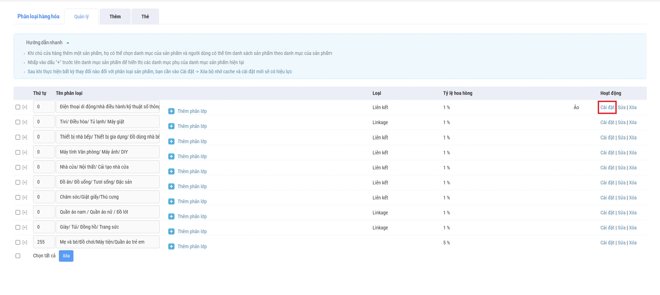Chức năng giúp người dùng quản lý các danh mục ngành hàng trên sàn TMĐT