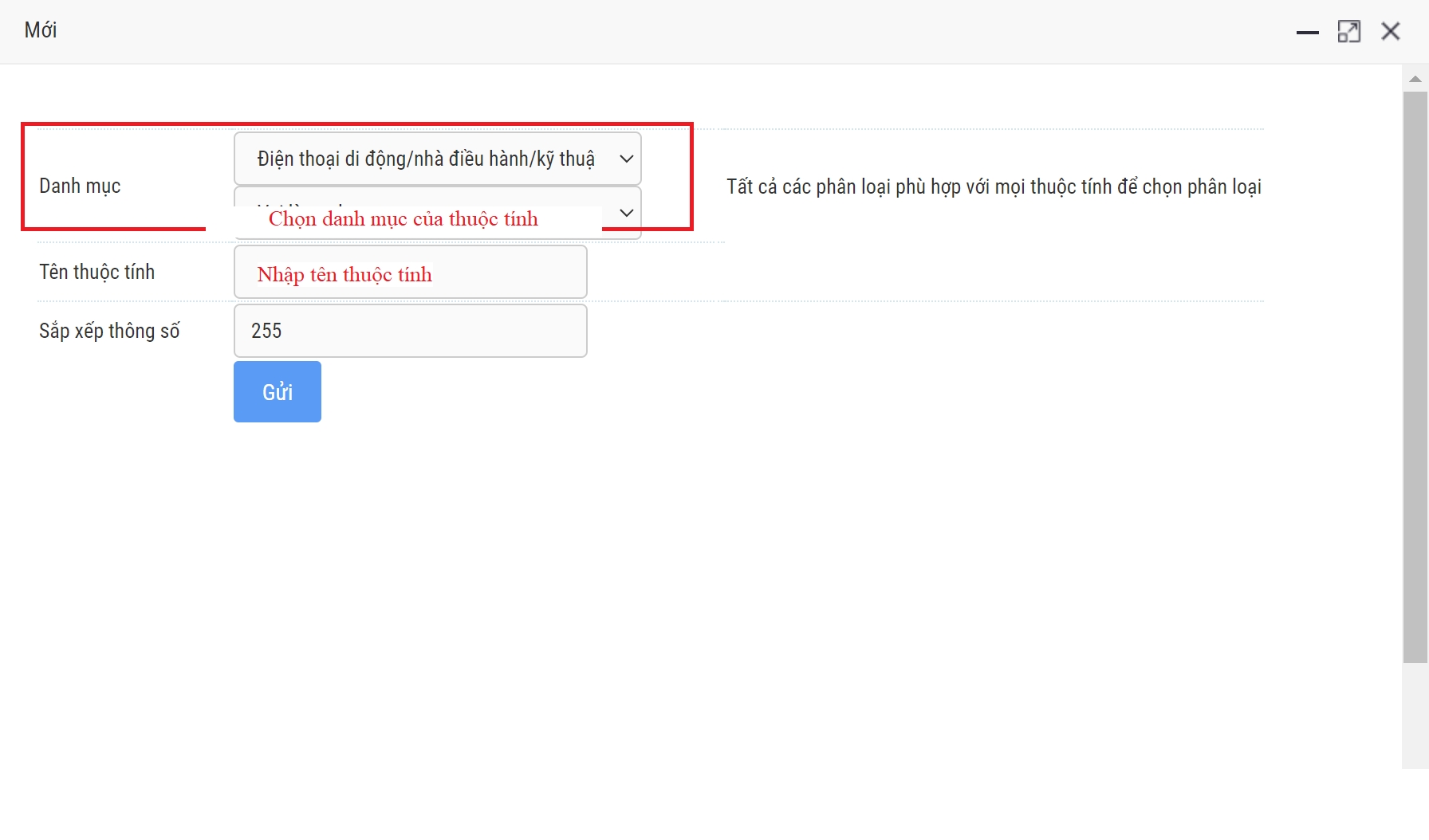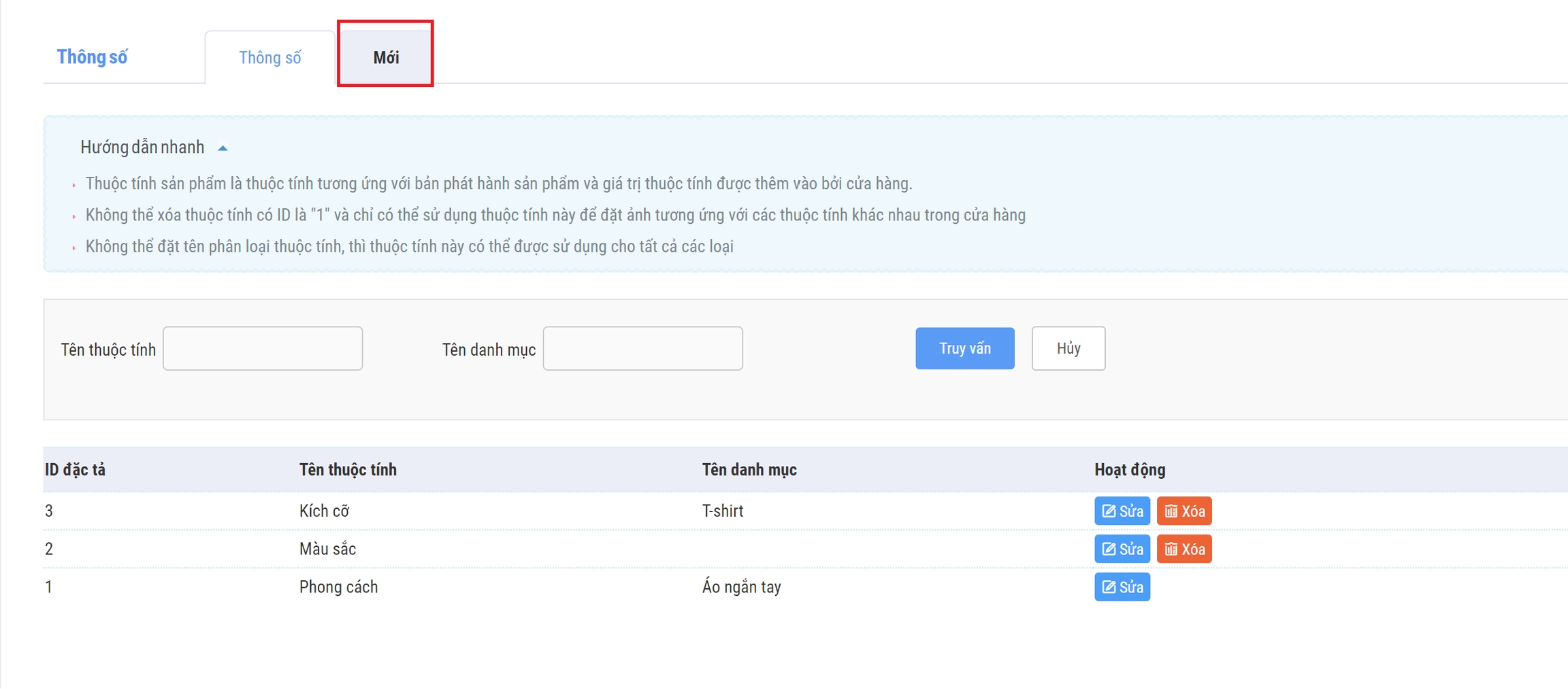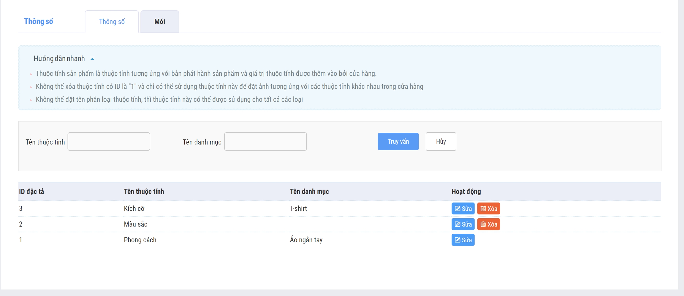 Chức năng giúp người dùng quản lý và thêm các thuộc tính của sản phẩm