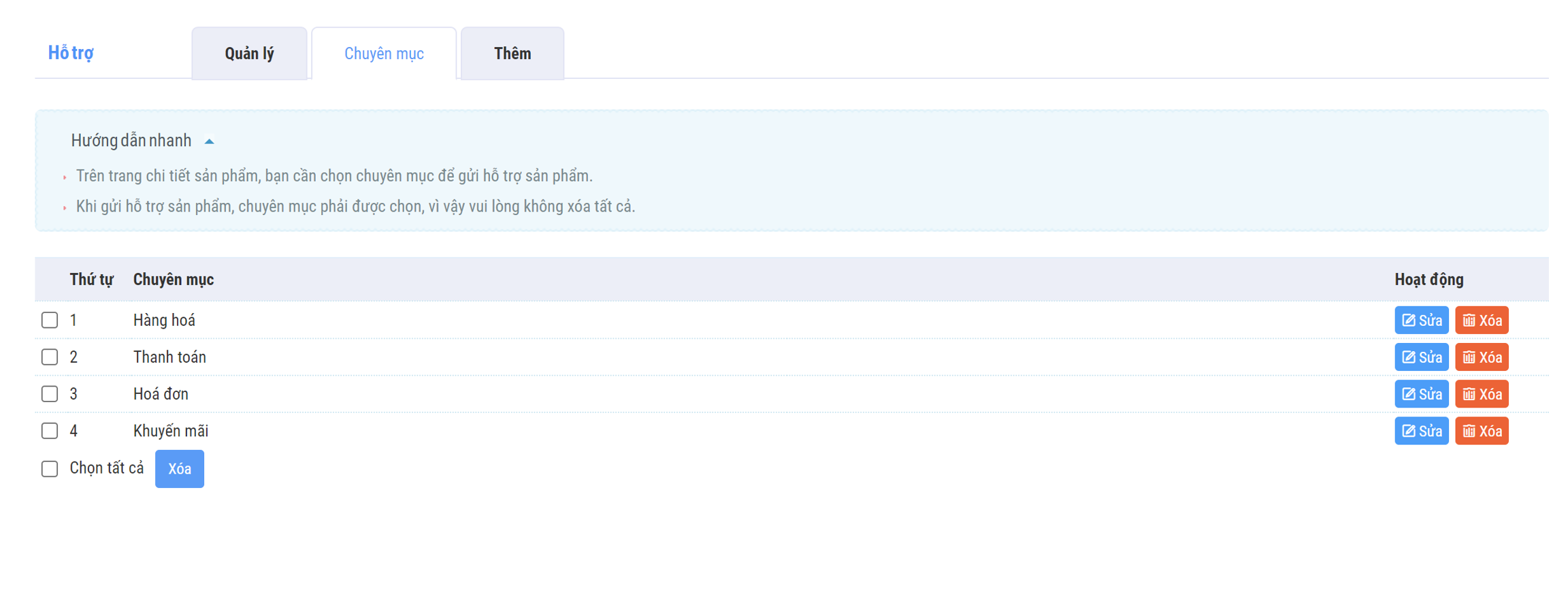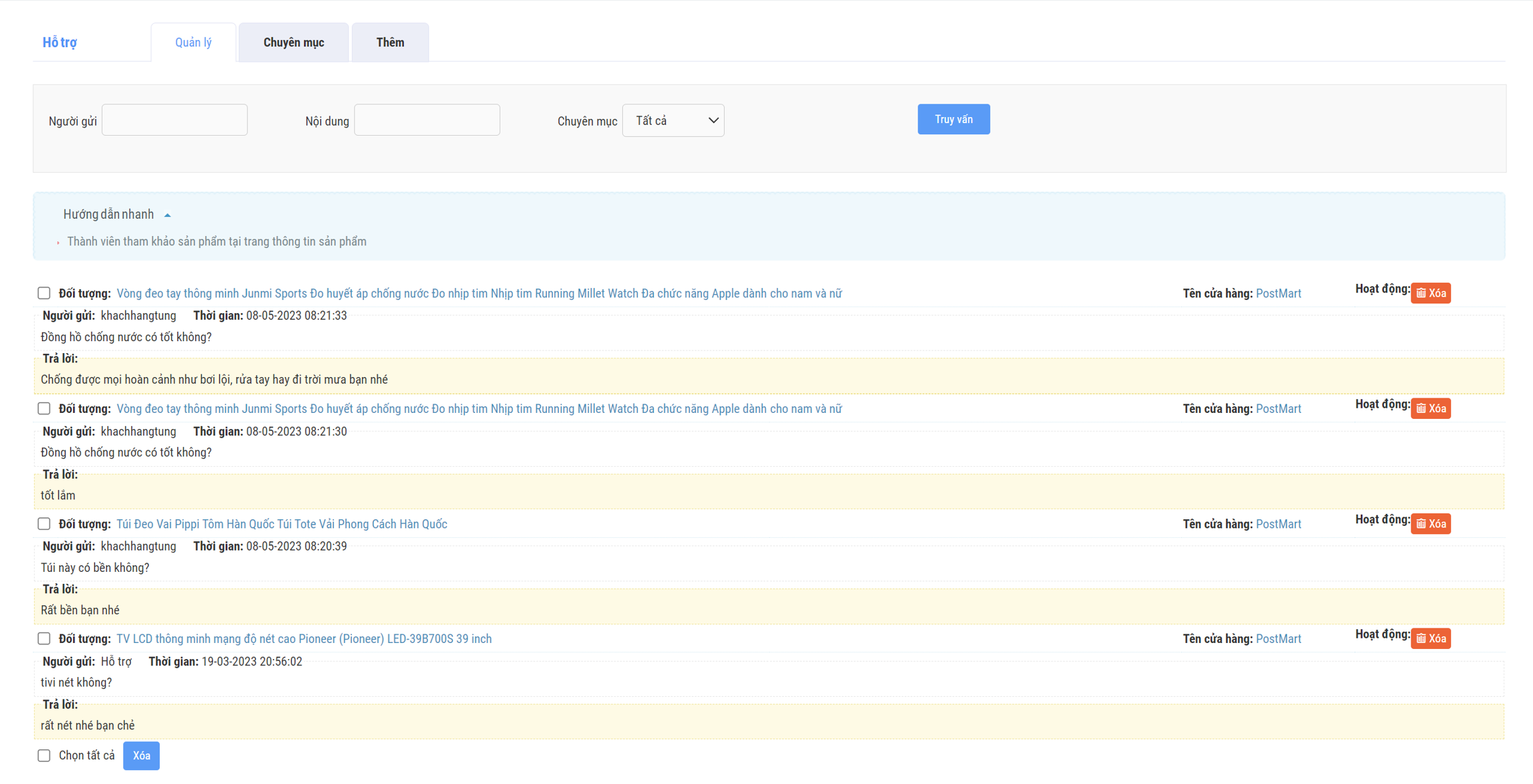 Chức năng giúp người dùng quản lý các câu trả lời bình luận của Nhà cung cấp và thêm các bài viết hỗ trợ cho Khách hàng
