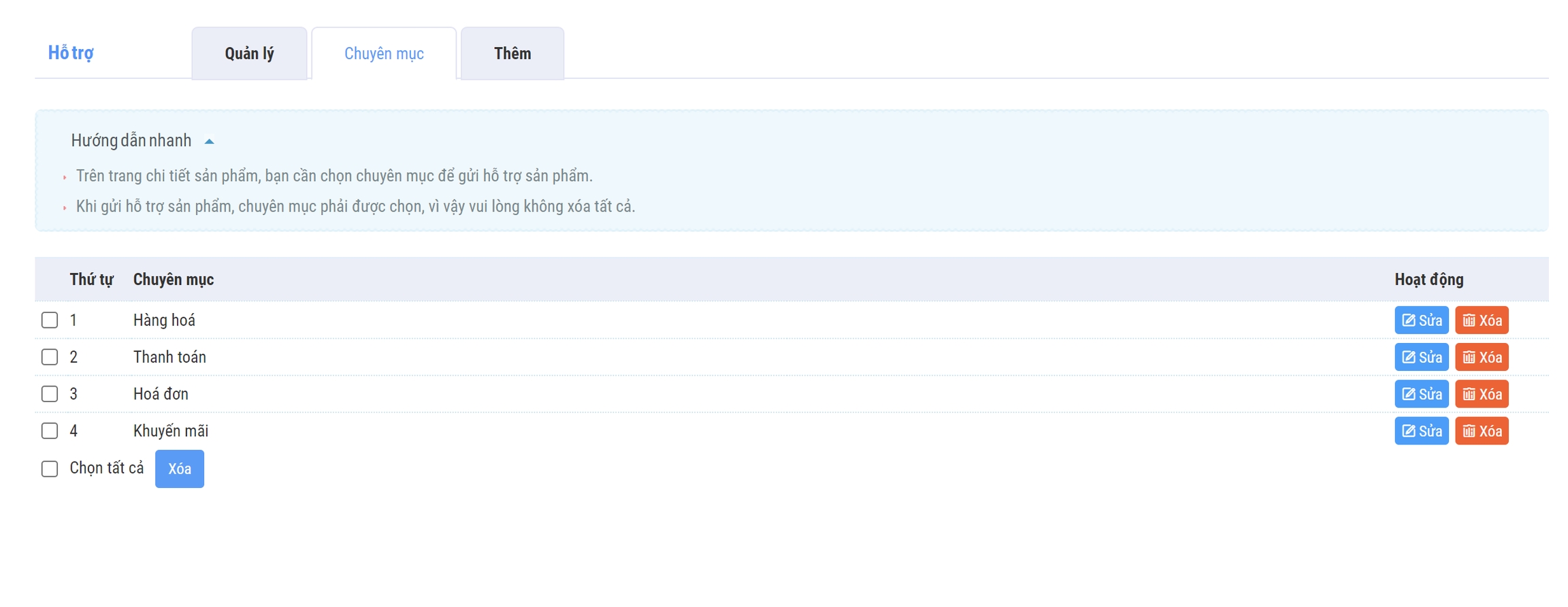 Chuyên mục: Quản lý các chuyên mục, bài viết hỗ trợ, hướng dẫn Khách hàng