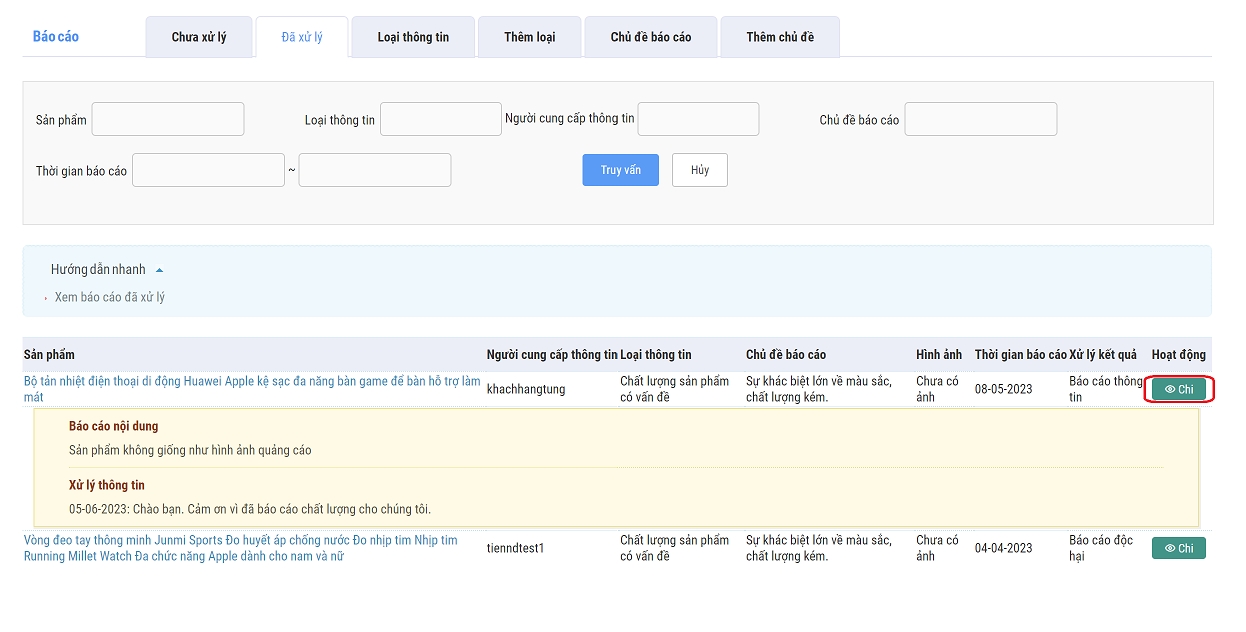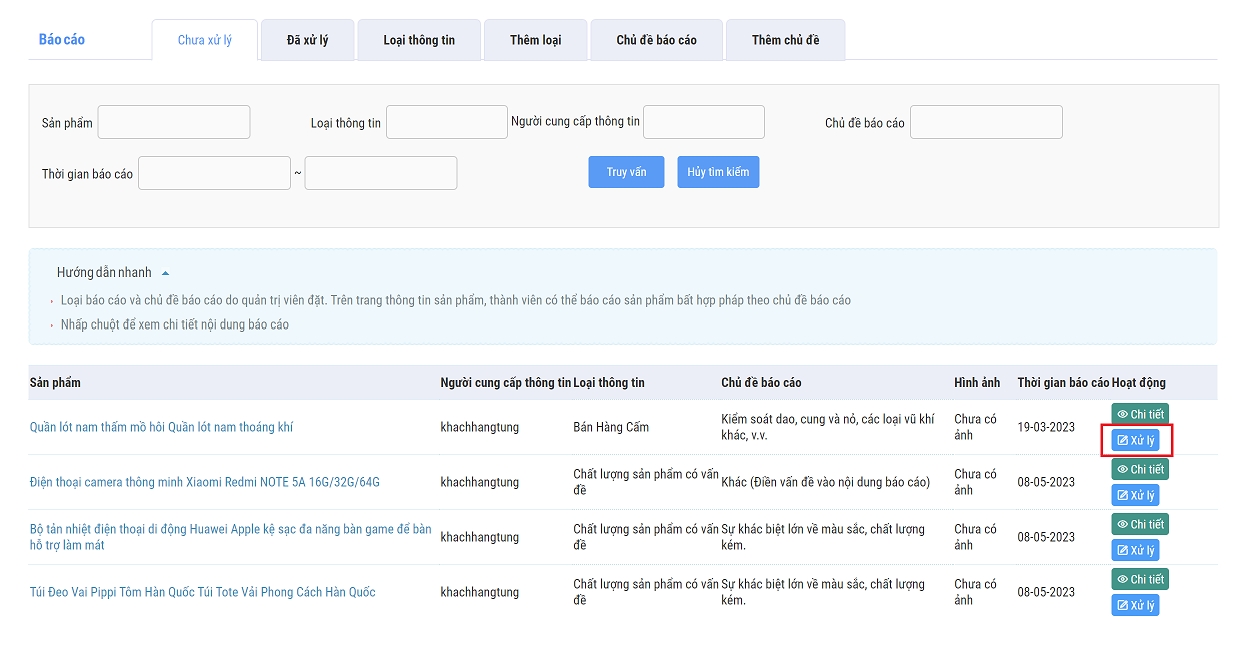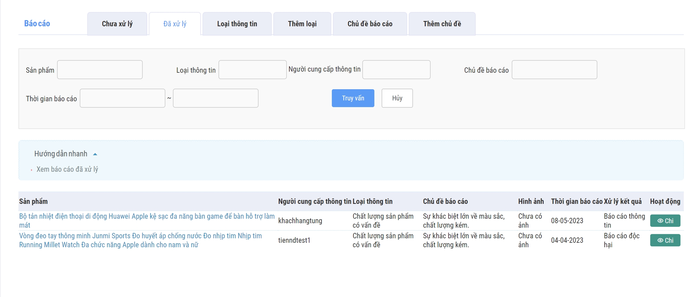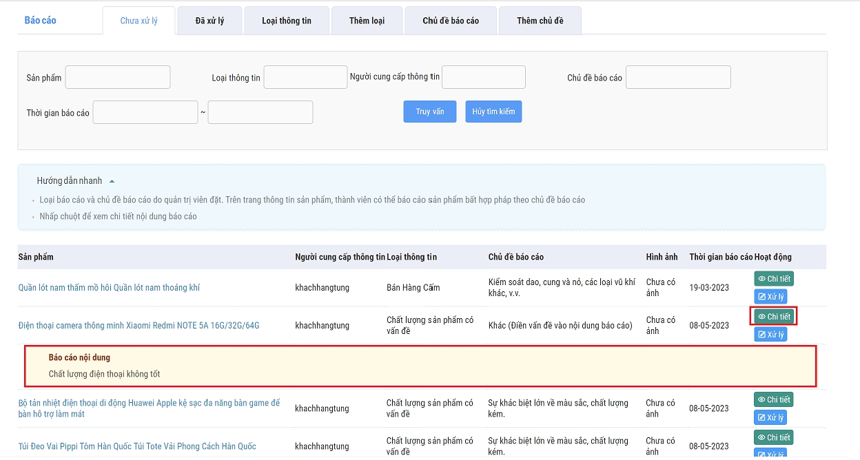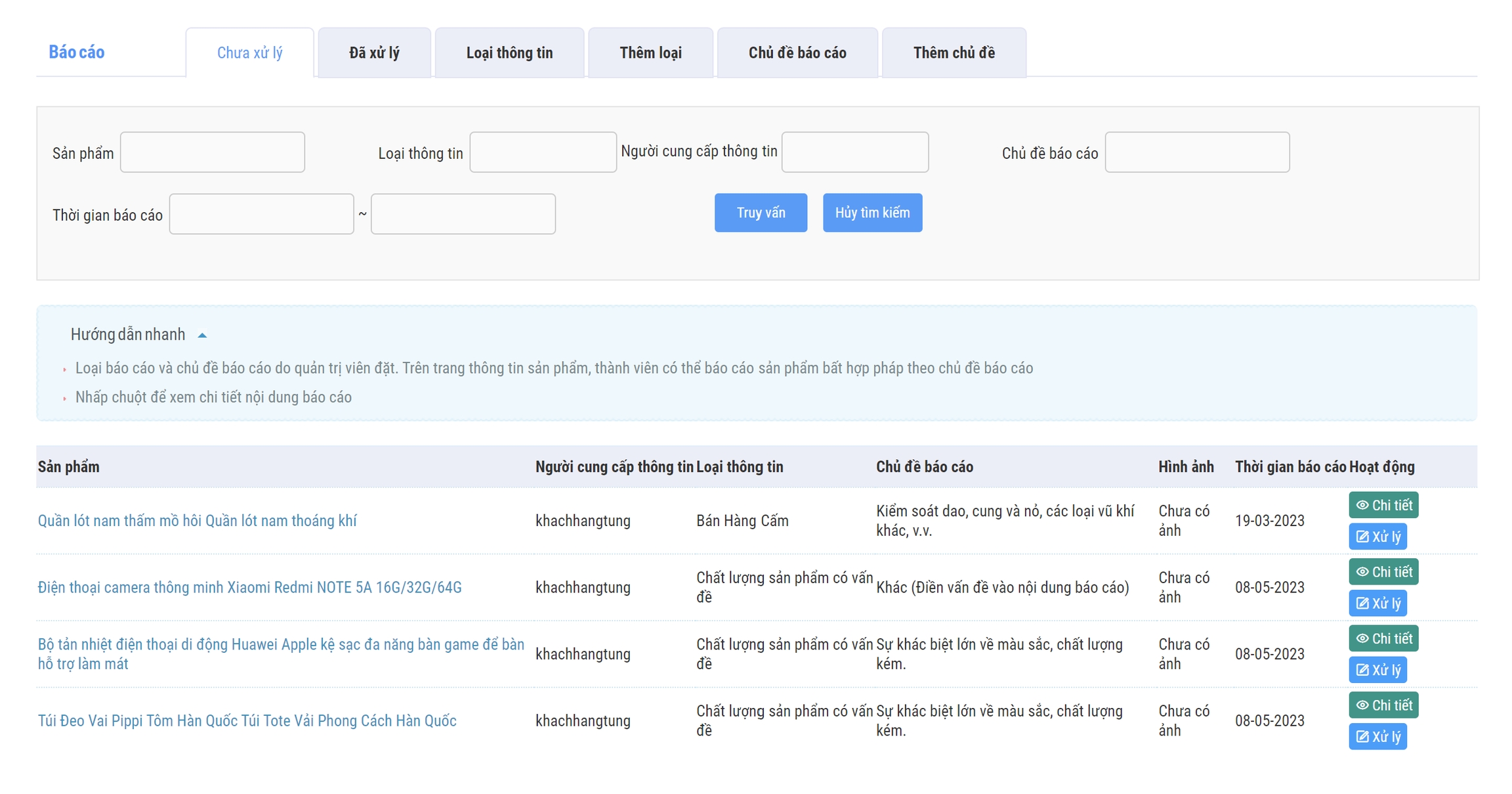 Chức năng giúp người dùng quản lý các báo cáo về sản phẩm của khách hàng