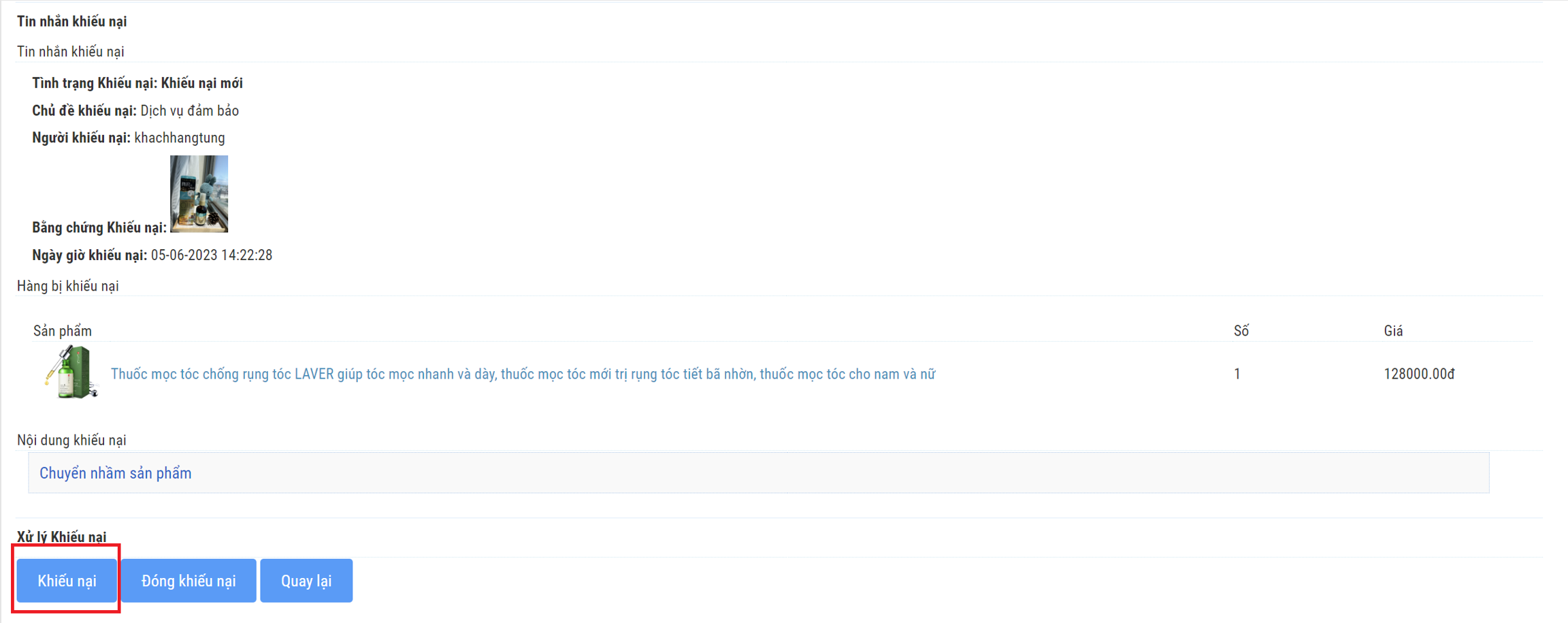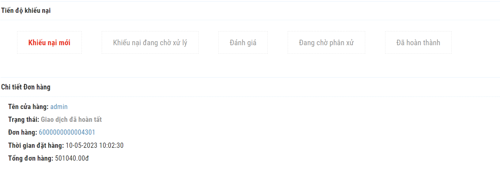 b. Khiếu nại đang chờ xử lý: Giúp người dùng quản lý các khiếu nại đang chờ Cửa hàng xác nhận và xử lý
