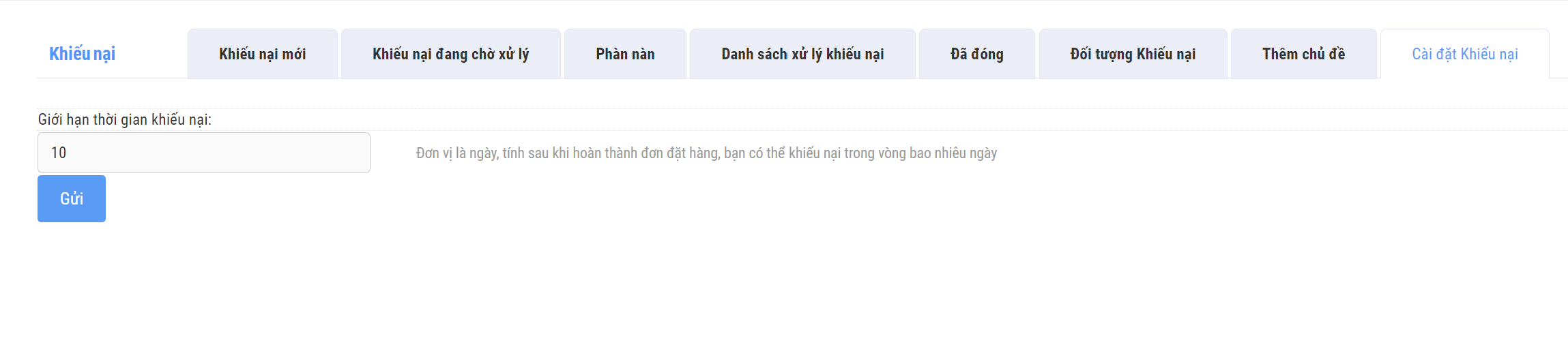 g. Cài đặt khiếu nại: Điều chỉnh thời gian khách hàng có thể khiếu nại sau khi đã nhận được sản phẩm