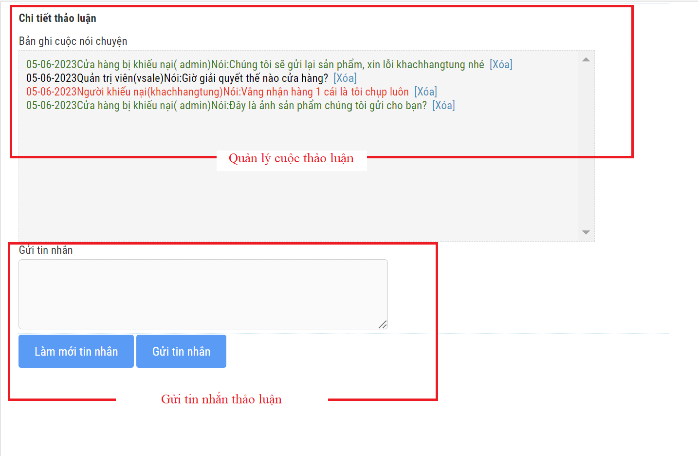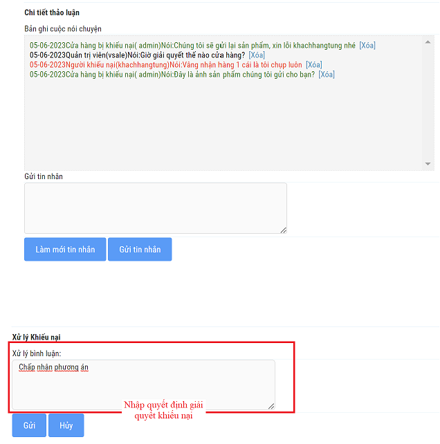 c. Phàn nàn: Quản lý cuộc thảo luận giữa Cửa hàng và Khách hàng về khiếu nại