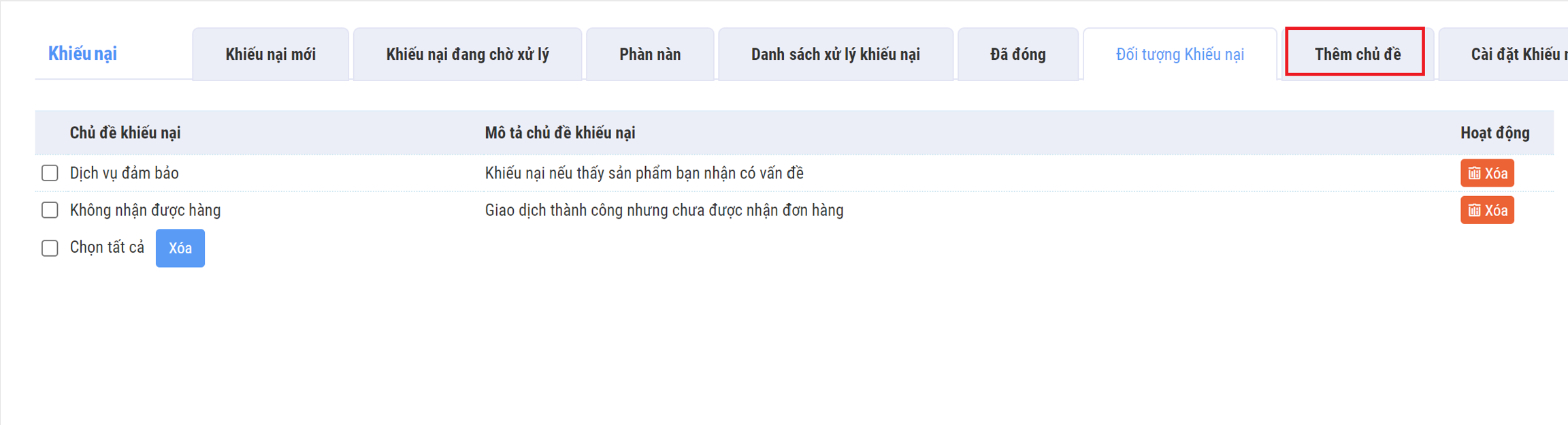 Chức năng giúp người dùng quản lý các khiếu nại của khách hàng
