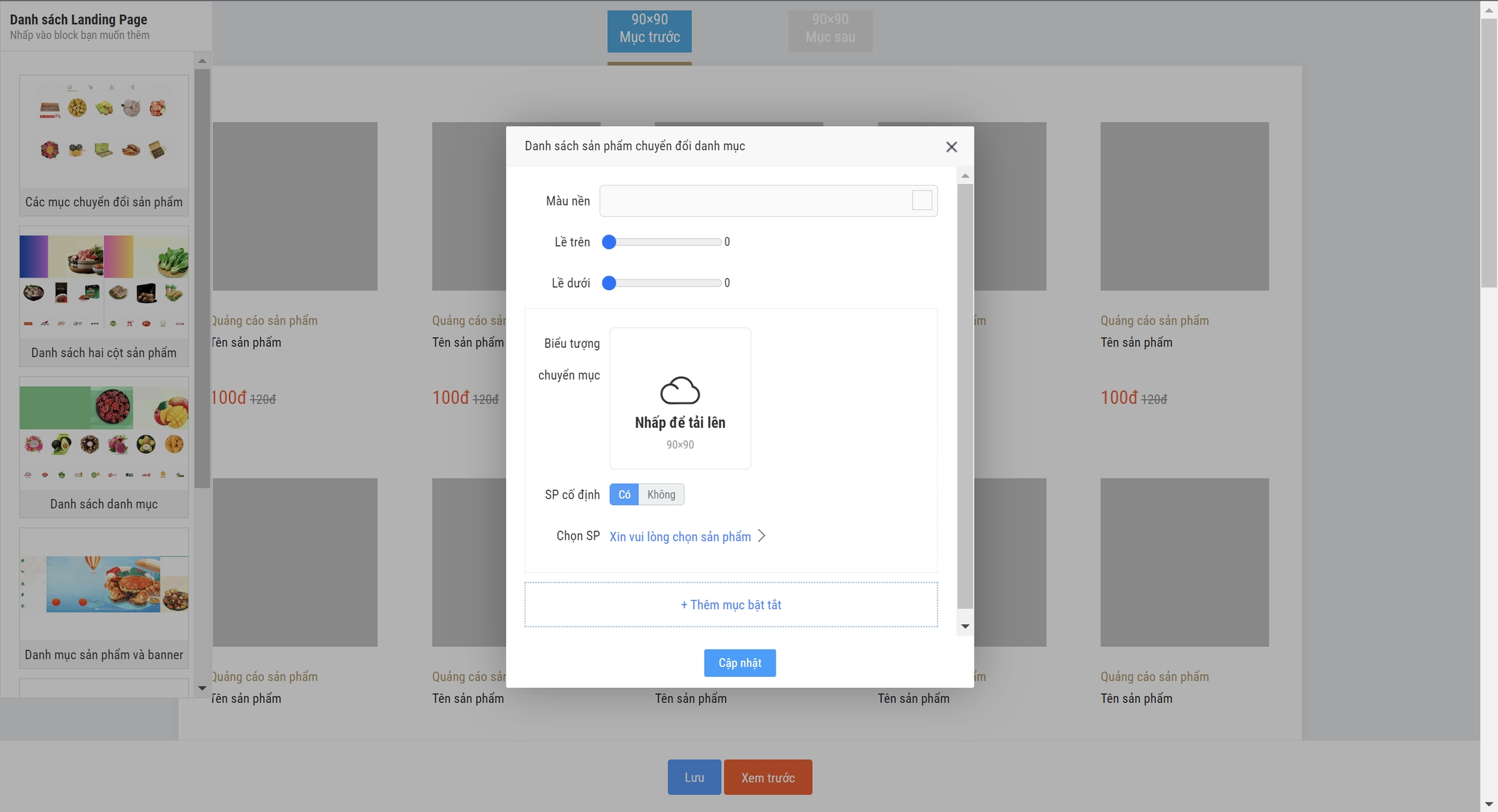 Chức năng giúp người dùng tạo các Landing page cho sản phẩm